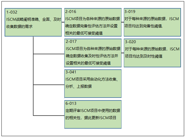 ÔÚͼÖеÄ×·ËÝÁ´Ê¾ÀýÖУ¬µÚÒ»ÌõÁ´ÓÉÆÀ¹ÀÒªËØ1-032¡¢2-016ºÍ3-019×é³É£¬Éæ¼°ISCMÏà¹ØÊý¾ÝµÄÍêÕûÐÔ¡£µÚ¶þÌõÁ´ÓÉÆÀ¹ÀÒªËØ1-032¡¢2-017ºÍ3-020×é³É£¬Éæ¼°ISCMÏà¹ØÊý¾ÝµÄʵʱÐÔ¡£µÚÈýÌõÁ´ÓÉ1-032ºÍ3-041×é³É£¬Éæ¼°Êý¾ÝµÄ×Ô¶¯»¯´¦Öóͷ£¡£µÚËÄÌõÁ´ÓÉ1-032ºÍ6-013×é³É£¬É漰ʹÓÃÕâЩÊý¾Ý»ØÊס¢¸üÐÂISCMÏîÄ¿¡£