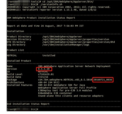 ÒªÁì¶þ£º½øÈë/opt/IBM/WebSphere/AppServer/binĿ¼Ï£¬Ö´ÐÐ./versionInfo.sh¼´¿ÉÉó²éÄ¿½ñ°æ±¾£¬Éó²éPackageÈÕÆÚ£¬ÈôÊǵÍÓÚ20200603Ôò˵Ã÷±£´æÇ徲Σº¦¡£