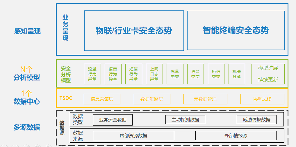 Çå¾²Êý¾ÝÖÐÐÄÖ÷ÒªÍê³ÉԭʼÊý¾ÝµÄ½ÓÈëÒÔ¼°¶ÔÊý¾Ý¾ÙÐÐÆðÔ´µÄÕûÀíÊÂÇé¡£Çå¾²ÆÊÎö×ÓÆ½Ì¨ÈÏÕæ¶ÔÊý¾Ý¾ÙÐÐÆÊÎö£¬°üÀ¨Í³¼ÆÆÊÎö£¬»úеѧϰµÈ£¬¶ÔÎïÁª¿¨µÄÊý¾Ý¾ÙÐÐÓªÒµÒì³£ÆÊÎö£¬ÕÒ³öÆäÖеÄÒì³£ÇéÐΡ£Çå¾²Ì¬ÊÆÖÎÀí×ÓÆ½Ì¨ÊµÏÖÈ«¾°Î£º¦Ì¬ÊƵķºÆð£¬°üÀ¨ÎïÁª¿¨Òì³£Ì¬ÊÆ£¬ÎïÁªÍø×°±¸Òì³£Ì¬ÊÆ£¬ÎïÁªÍø×°±¸¿µ½¡¶ÈÌ¬ÊÆµÈ¡£