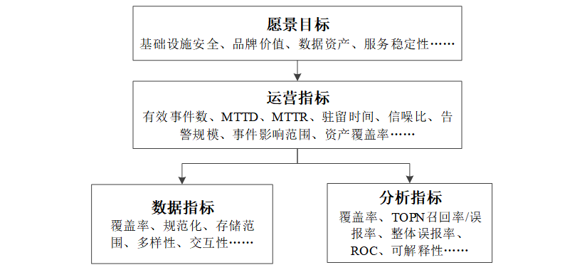 ÍøÂçÇå¾²ÔËÓªÄÜÁ¦µÄÌṩÒÔÄ¿µÄΪµ¼Ïò£¬´ÓÆóÒµ¡¢×éÖ¯¡¢¹ú¼ÒµÄÔ¸¾°Ä¿µÄ³ö·¢£¬½ø¶ø¹¹½¨Çå¾²ÔËӪʹÃü¼¶±ðµÄÔËÓªÖ¸±ê£¬½øÒ»²½Ö¸µ¼¹¹½¨Êý¾ÝÓëÆÊÎö²ãÃæµÄÊÖÒÕÖ¸±ê£¬×îÖÕÐγÉͼ1 ËùʾµÄÌõÀí»¯Ö¸±êϵͳ£¬ÒÔÆÀ¹ÀÊÖÒÕʵÏÖµÄÓÐÓÃÐÔ ¡£