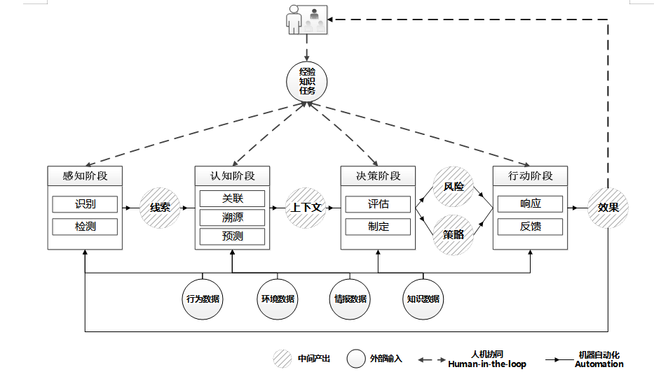 ÕûÌåÉÏ£¬AISecOpsÊÖÒÕ¿ò¼Ü°üÀ¨Á½¸ö´óµÄÑ­»· ¡£Ò»¸öÊÇͼÖÐʵÏßÁýÕֵĻúе×ÔÑ­»·£¬ÕâÊÇAISecOps×·ÇóµÄÔËÓªÒªº¦Ê¹Ãü×Ô¶¯»¯µÄ×îÖÕÄ¿µÄ ¡£ÁíÒ»¸öÊÇͼÉÏÐéÏßÁýÕÖµÄÈË-»úЭͬѭ»·£¬ÕâÒ»²¿·ÖÖØµãÃè»æÈËÐèÒª¼ÓÈëµ½ÔËÓª×Ô¶¯»¯µÄÿ¸öÒªº¦»·½ÚÖУ¬Í¬Ê±³ä·Ö»ñÈ¡»úеµÄÊý¾Ý·´Ïì ¡£¸ßˮƽÔËÓª×Ô¶¯»¯ÊµÏÖµÄÒªÒåÈÔÈ»ÊǶԓÊý¾Ý-ÐÅÏ¢-֪ʶ”ÌõÀí»¯µÄÆÊÎöÓëÍÚ¾ò£¬ÒÔÓ¦¶Ô¶¯Ì¬²»È·¶¨ÐÔµÄÍøÂç¿Õ¼äÇéÐÎÓë¸ß½»»¥µÄ¹¥·À¶Ô¿¹Àú³Ì ¡£Òò´Ë£¬Î¨Óк»ÊµÍøÂç¿Õ¼äÊý¾ÝµÄ¶à²ã¼¶Ê¹ÃüÄÜÁ¦»ù´¡£¬²Å»ª×èÖ¹´î½¨Ç徲ʹÃü×Ô¶¯»¯µÄ“ò×Â¥º£ÊД ¡£ÏÖʵÉÏ£¬Ïֽ׶εÄÍþвʶ±ð¡¢ËÝÔ´¡¢Õ¹ÍûµÈÒªº¦ÊÖÒÕÄÜÁ¦µÄÖÇÄÜ»¯Ë®Æ½£¬ÈÔÄÑÒÔÓÐÓÃÖ§³Ö»ùÓÚSOARµÄ¾«×¼ÏìÓ¦ ¡£ÊÂÎñÎóÅС¢ÅþÁ¬Îóɱ¡¢¾öÒéºÚÏäµÈ¶àÖÖÀàÐ͵ÄÊÖÒÕÆ¿¾±£¬Ê¹µÃ¸ü¸ßˮƽµÄ×Ô¶¯»¯ÖÇÄÜ»¯ÊµÏÖÔÚÉæ¼°¸ßΣº¦¡¢Òªº¦¾öÒéµÄÇå¾²³¡¾°ÏÂÄÑÒÔÓÐÓð²ÅÅ ¡£Òò´ËÔÚÄ¿½ñ½×¶ÎÏ£¬ÈË-»úÖÇÄܵijä·ÖÈںϣ¬¾ÍÏÔµÃÓÈΪҪº¦ÁË ¡£