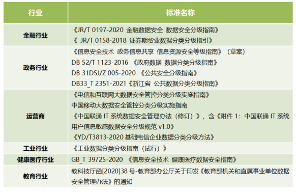 ÏÖÔÚº£ÄÚÓÐÐí¶àÐÐÒµ¡¢µØ·½ÒÑ¾ÖÆ¶©ÁËÊý¾Ý·ÖÀà·Ö¼¶µÄ±ê×¼£¬ÏêϸÐðÊöÁËÊý¾Ý·ÖÀà·Ö¼¶µÄÁ÷³ÌÓë°ì·¨£¬Ïà¹ØÐÐÒµ¡¢µØ·½µÄ·ÖÀà·Ö¼¶±ê×¼ÈçÏ£º